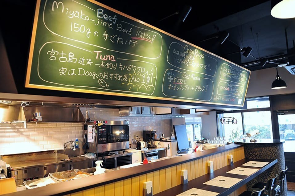 宮古島近海でとれるキハダマグロを挟んだ「ツナステーキバーガー」や、宮古島から約67km西に行ったところにある多良間島の多良間牛を使った「多良間牛バーガー」など、どのメニューも大満足のおいしさ。宮古島ならではの食材を、カジュアルなアメリカンスタイルで食べることができます。